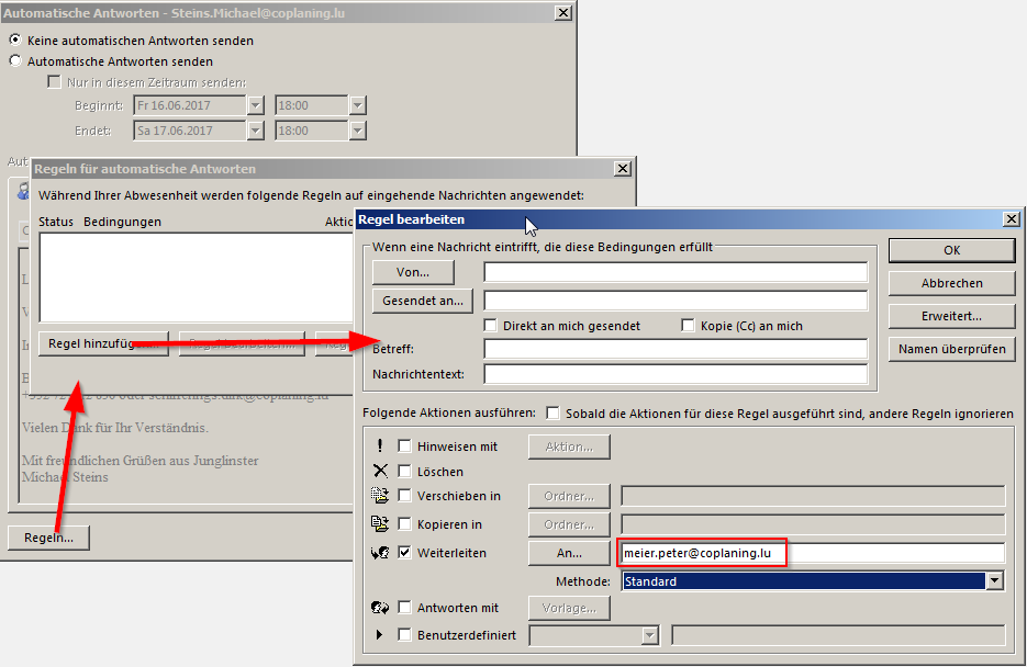 - Um E-Mail-Weiterleitungen einzurichten wie folgt vorgehen: